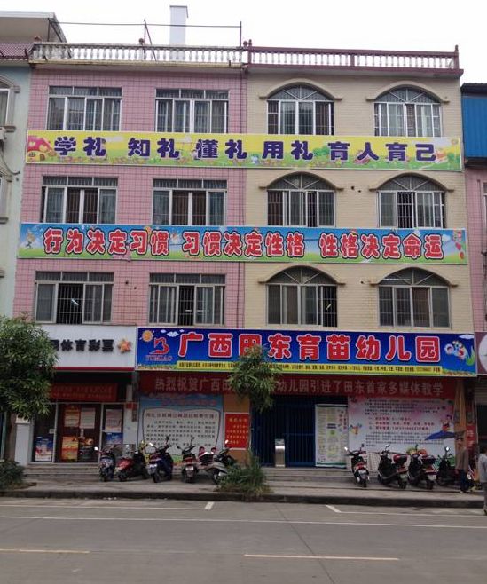 一、幼儿园概况    我园创办于2001年7月1日,至今已经有13年的办园经验,全名为广西田东育苗幼儿园(原油城路幼儿园)。地处油城路中山门诊斜对面,即东宁西路合恒巷130号,位于县城中心地段,地理位置优越,环境优雅,交通便利,是一所家长,社会认可的私立幼园。我园已走过的十二个春秋,从开办时的一个幼儿发展到现在的规模,成为田东人民......[详细]